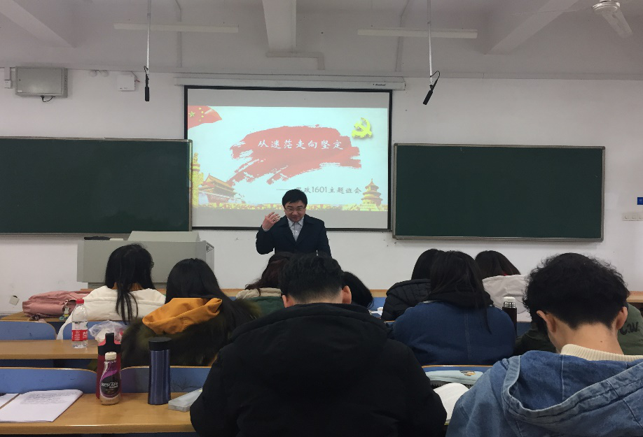 2月28日上午10:00,思政1601班于新校区B座教室召开了以“从迷茫走向坚定”为主题的班会,邀请了班导师王翔老师出席会议并发表讲话。