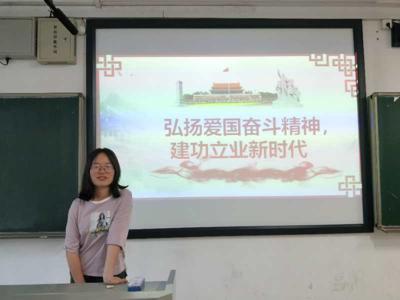 首先班导师胡栋材老师结合本次班会的主题,向同学们简要介绍了建国七十周年以来的艰辛历程以及党带领人民克服重重艰险,建设新时代强国的历史以及“两个一百年”奋斗目标等国家现阶段政策。胡老师一番讲述让同学们对于国家的发展历史以及党的伟大带领都有了进一步的了解,对于祖国的富强与党的进取都肃然起敬。