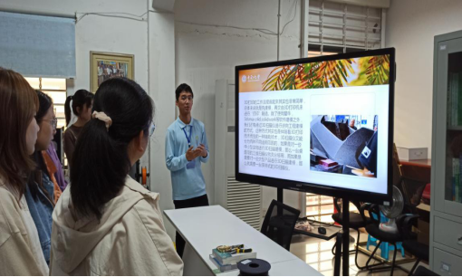 首先,同学们先来到的是实践基地的展厅,由创新创业基地的工作人员为同学们进行讲解。在展厅里,同学们看到了来自国家领导人对大学生创新创业活动的殷切关怀,也看到了实践基地的学长学姐的活动风采,还有优秀手工制品等等。
