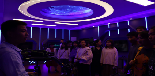 最后,大家进入了一间神秘的工作室——VR工作基地!这是一个神奇并且充满未来科技感的地方,大家可以感受到虚拟世界的神奇,会感叹现代科学技术的神奇。据VR的研究人员介绍,VR目前的应用领域涉及了医疗、游戏、实验等多个领域,以后还会进入到人类社会的很多方面。这让大家不禁赞美VR的伟大力量!