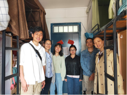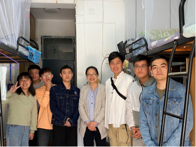 其次来到了南六舍的男生寝室。男生们热情地向李老师和陈老师介绍了南六舍的“湖景房”,陈老师也回忆起自己的本科时光,感慨时光变化之时也鼓励同学们认真学习、多运动锻炼身体。李老师也为大家送上零食大礼包,嘱咐同学们开心地学习、生活。