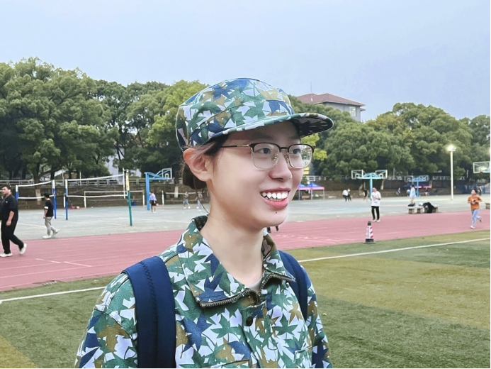 “我觉得首先军训在强身健体和磨练意志方面起到了很大的作用,因为明显能感觉到锻炼多了以后自己身体素质慢慢变好了,到后来也没有之前那么频繁地抱怨,” 在思政2201班韩锦彤眼里,这场军训让她受益匪浅。“其次我认为军训期间有很多集体活动,比如队列训练和红歌比赛之类的,都能帮助我们提升纪律意识,更好地融入集体;然后军训还可以让我们养成良好的学风和生活作风,这一点相信大家都深有体会。”