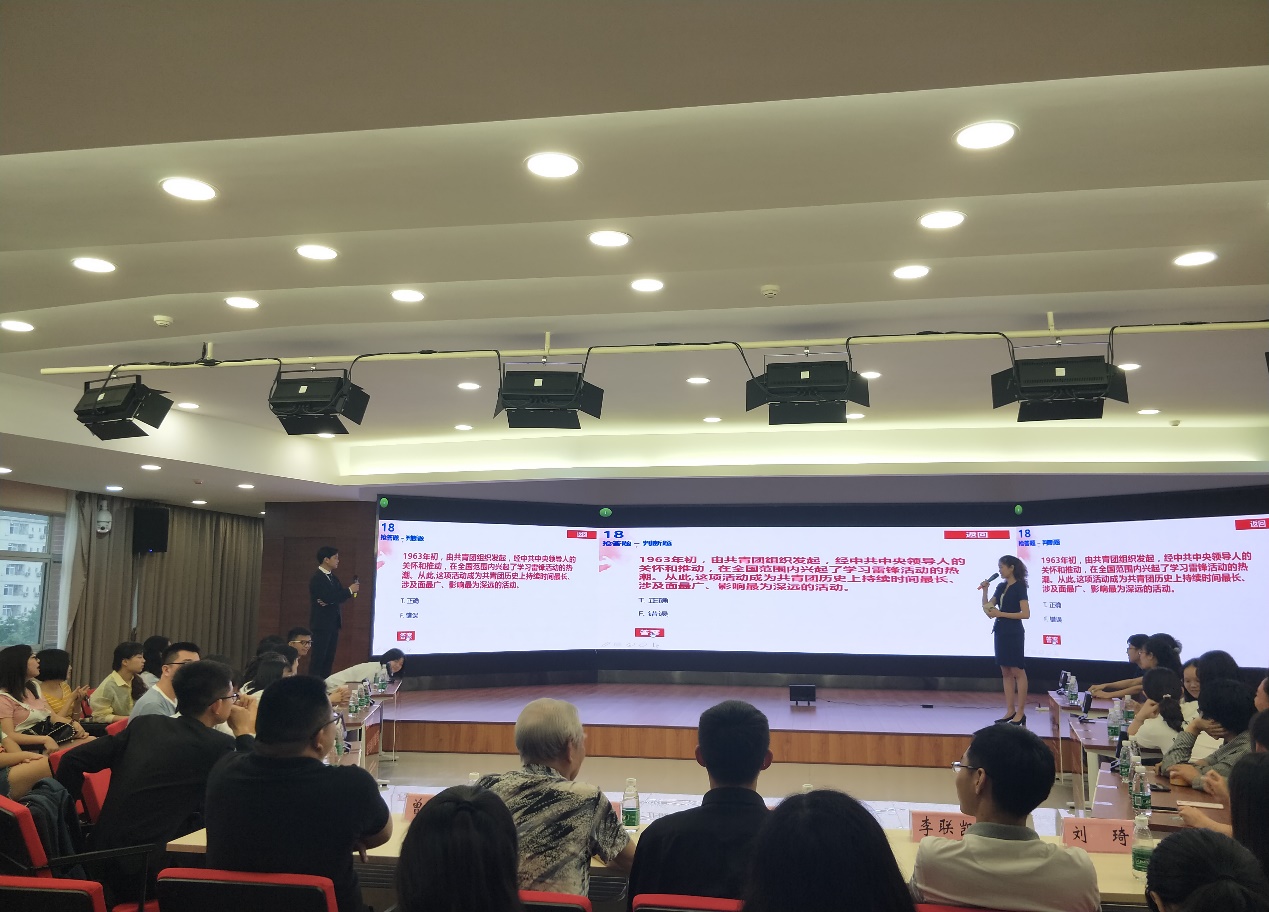 由共青团600cc全讯白菜自助注册委员会主办、共青团全讯800cc大白菜官网委员会承办的2019年600cc全讯白菜自助注册“弘扬五四精神,激扬青春辉煌”党团知识竞赛决赛于6月12日下午15:00在新校区毓秀楼411教室顺利举行。600cc全讯白菜自助注册关心下一代工作委员会委员秦醉霞老师、校团委学生副书记乔泓瑞、湘雅医学院团委书记曾德露老师、文学与新闻传播学院团委书记李联凯老师、全讯800cc大白菜官网团委书记邹秉虹老师、地球科学与信息物理学院团委书记刘琦老师、资源加工与生物工程学院王静姝老师出席了本次比赛。