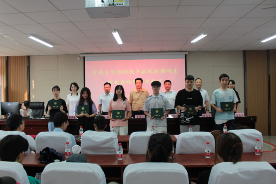 典礼结束后,领导老师分别与各班学生合影留念。祝愿2020级少数民族预科生奋发有为、胸怀家国情怀、努力为实现中华民族伟大复兴中国梦奉献青春力量。