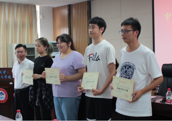 在庄严肃穆的国歌声中,仪式拉开序幕。首先,领导老师们宣读并表彰获获得荣誉称号和奖学金的学生。袁鑫璐等51名同学获得学年奖学金、蒋博彦等4位同学被评为“优秀学生干部”、吴涛等13位学生被评为学年“优秀学生”。