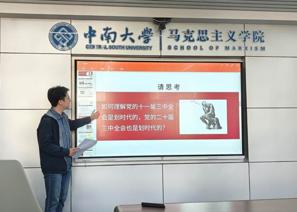 蓝天老师以“改革开放与中国特色社会主义事业”这一专题为例,展示了如何将党的二十届三中全会精神融入纲要课教学。蓝老师注重课前的教学准备,并以学生的实际问题和学习兴趣为基础进行主题讨论设计。他通过理论阐述、对比分析、归纳总结等方式比较充分地将二十届三中全会精神融入到课程的三个主题讨论中:一是结合真理标准问题大讨论,阐释全面深化改革、推进中国式现代化的必要性;二是与十一届三中全会的伟大历史转折比较,引申出二十届三中全会的划时代性;三是通过总结改革开放的经验,提出二十届三中全会传承的精神价值。